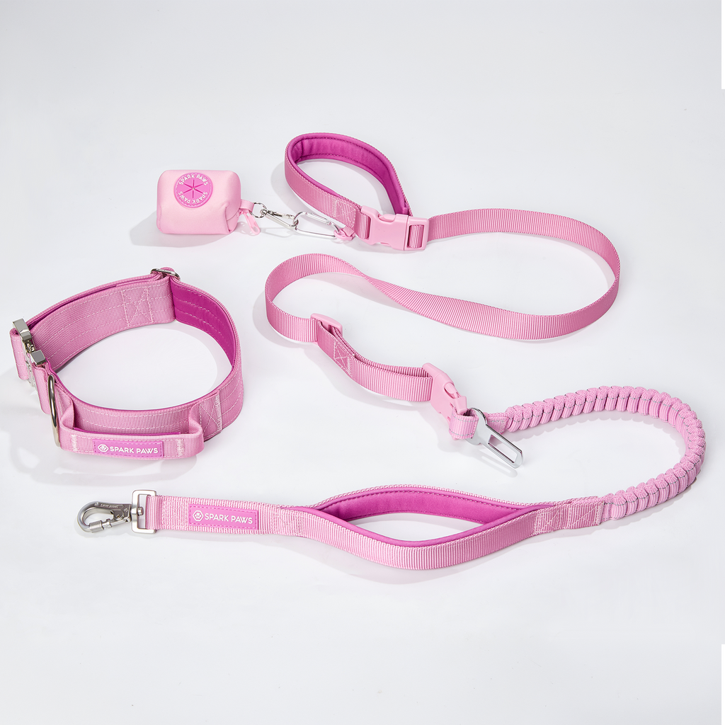 Ogni set include un Collare Tattico per Cani, un guinzaglio in Neoprene abbinato e un Porta Sacchetti Igienici.
