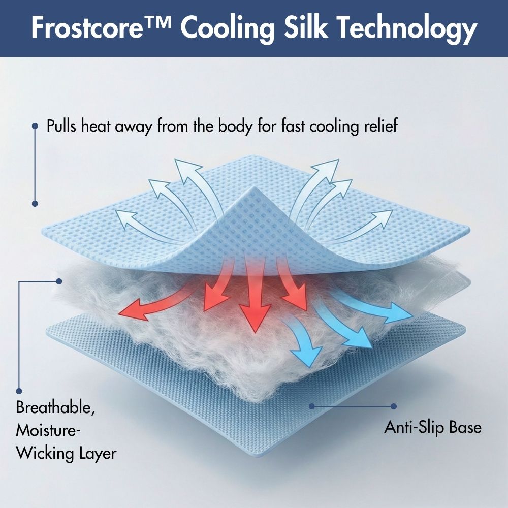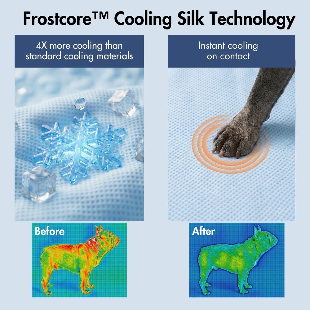 • Realizzato con tessuto refrigerante Frostcore™, la superficie allontana il calore al contatto per offrire una sensazione di fresco istantanea e rigenerante, perfetta per le calde giornate estive.