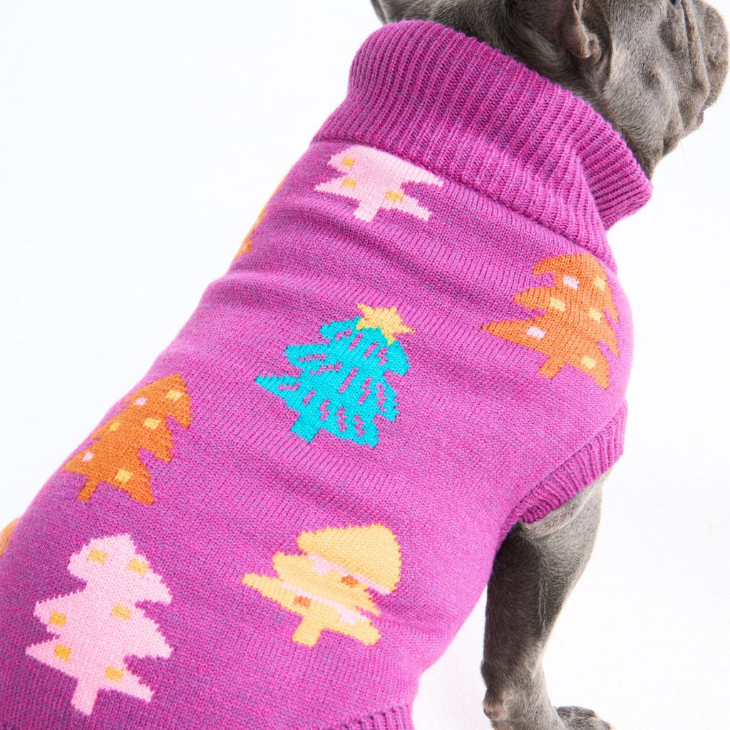 Maglione natalizio a maglia per cani – Alberi di zucchero magenta