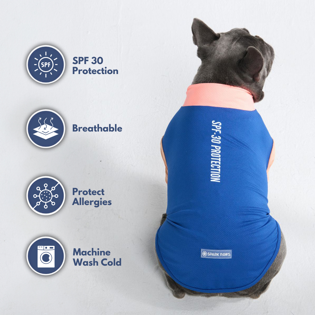 Proteggi il tuo cane dal sole con la nostra maglietta Sun-Block per cani SPF-30, che blocca il 97% dei raggi UVB nocivi mantenendo il tuo cane pulito e libero da allergeni.